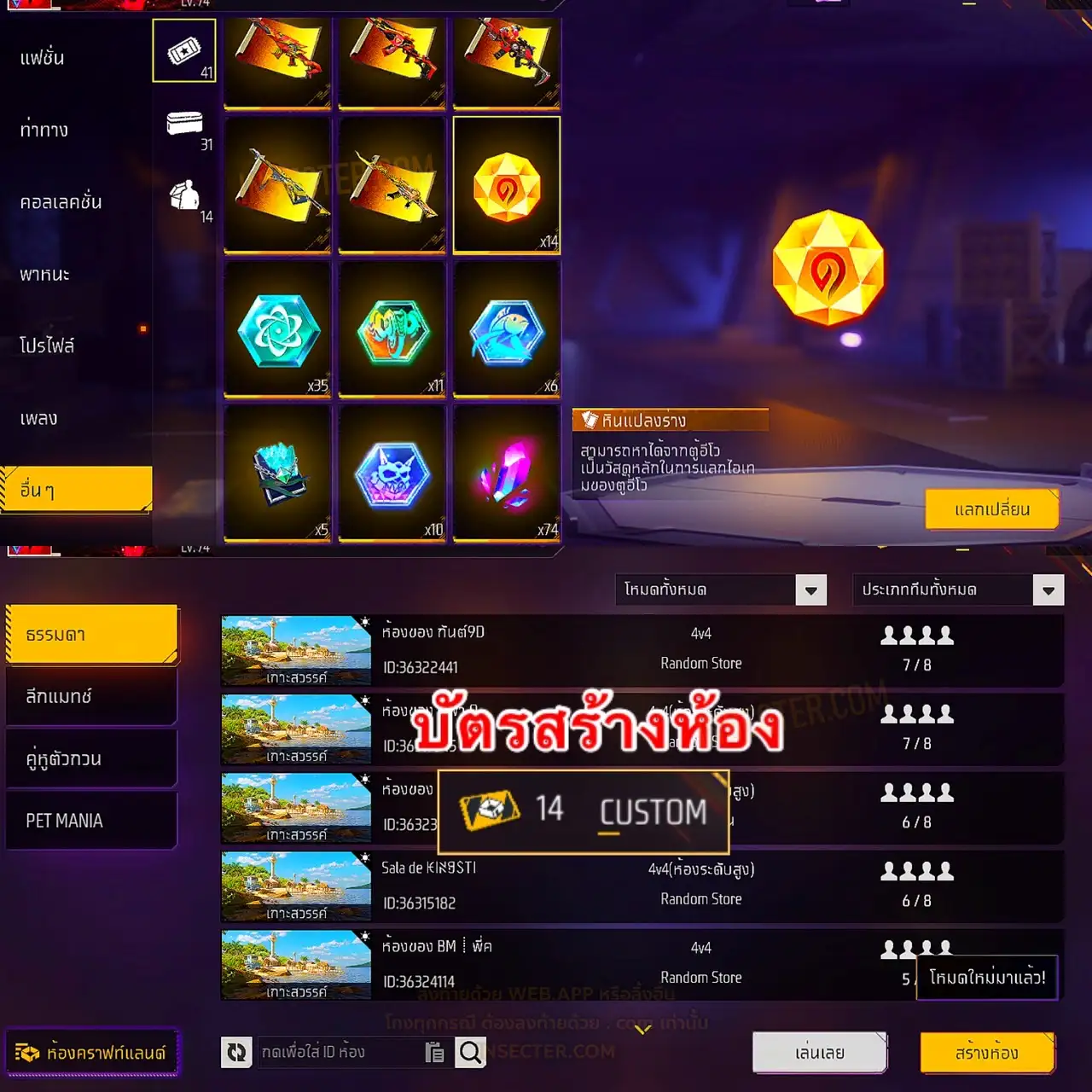 ข้อมูลย่อ : ปืuทำ7/6ได้ 7/4 4/1 2/1 ชุด640+ สกินปืu326+ ของแน่นเต็มคลัง M4ลั่น2 M4อีโว AKลาวา สกาไททัน2สี ควงม่วง ควงอีโวทองเขียว ควงดีแท็ค หมัด4 น้ำแข็ง/Drager /Frozen/Bone เสื้อเอลซ่า ท่าไก่ ท่าวิดพื้น สักทองชาย จิ้งจอกขาวหญิง จิ้งจอกแดงชาย แว่นหัวใจ บาวันขาว เสื้อแรงค์ ตาสายฟ้า หัวขาว ปิดปากดำ ปัดเป๋ ชุดตำนาน คาบูกิ สักดำ แต่งงาน ลายไฟ เวน่อม พี่ตูน นักแข่ง นักโทษ สูทดำ/ขาว BTS เสื้อเอมซี ปีกนกแดงคู่ ปีกนกฟ้า เรดไรท์ ก๊อตจิ ลายกระดูก เกงขาสั้นบุชเชอร์ ยากูซ่า เสื้อเวล70 เสื้อแรงค์5 สักดำญ. หินแปลงร่าง14ชิ้น บัตรสร้างห้อง14ชิ้น