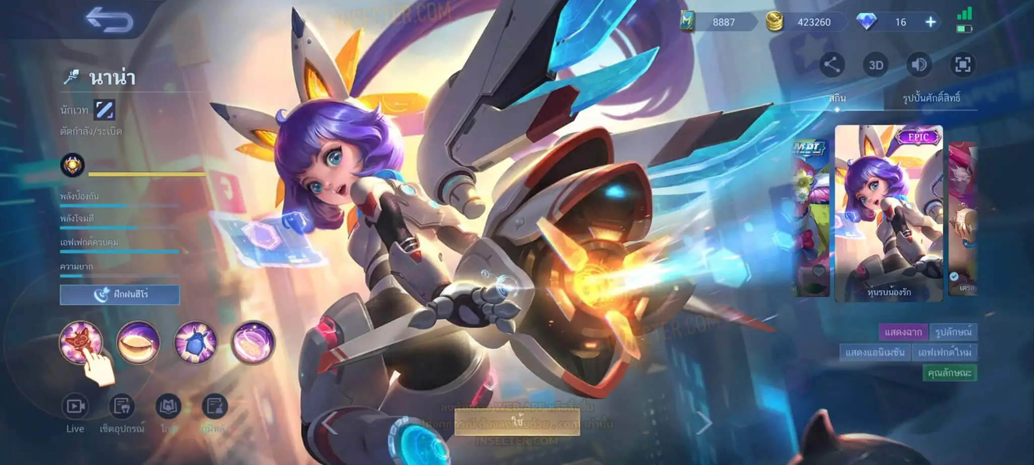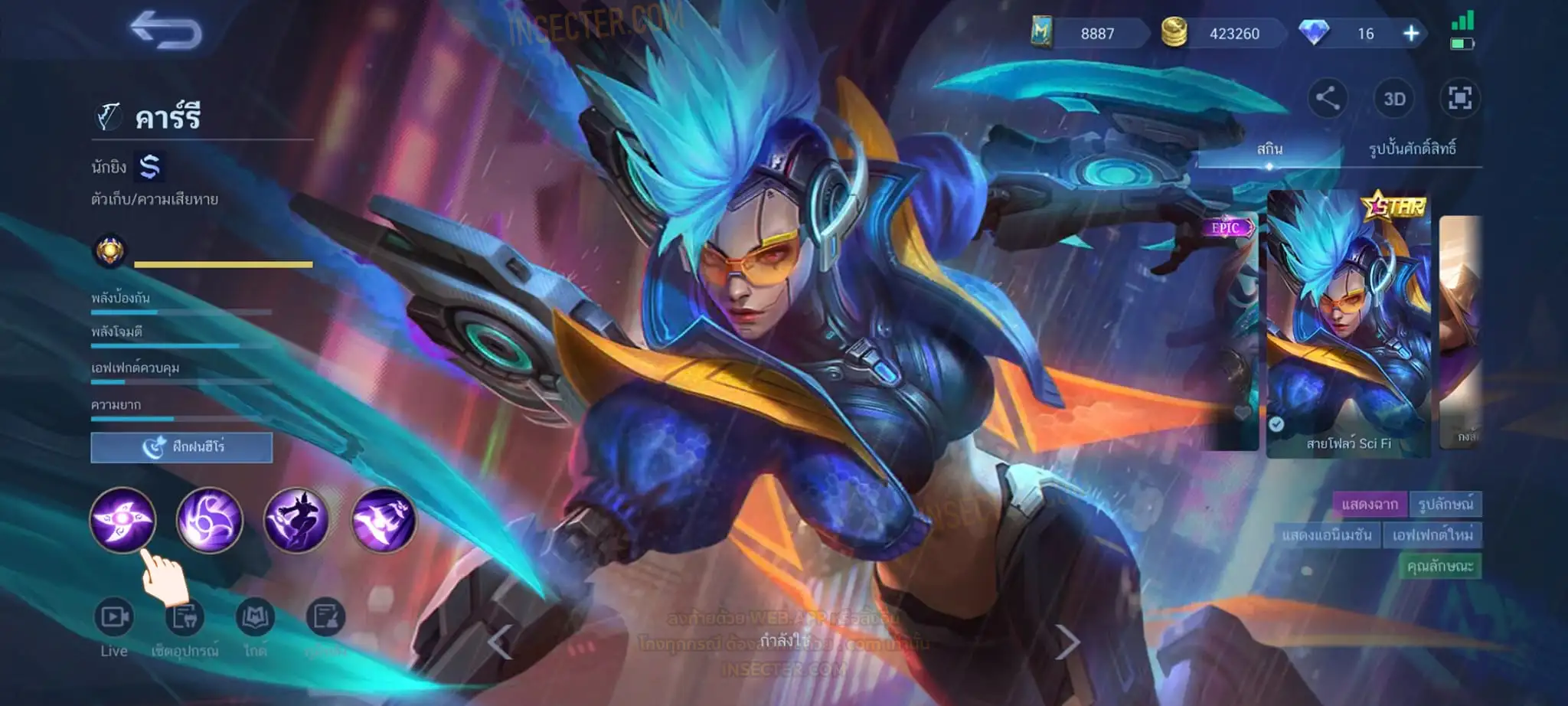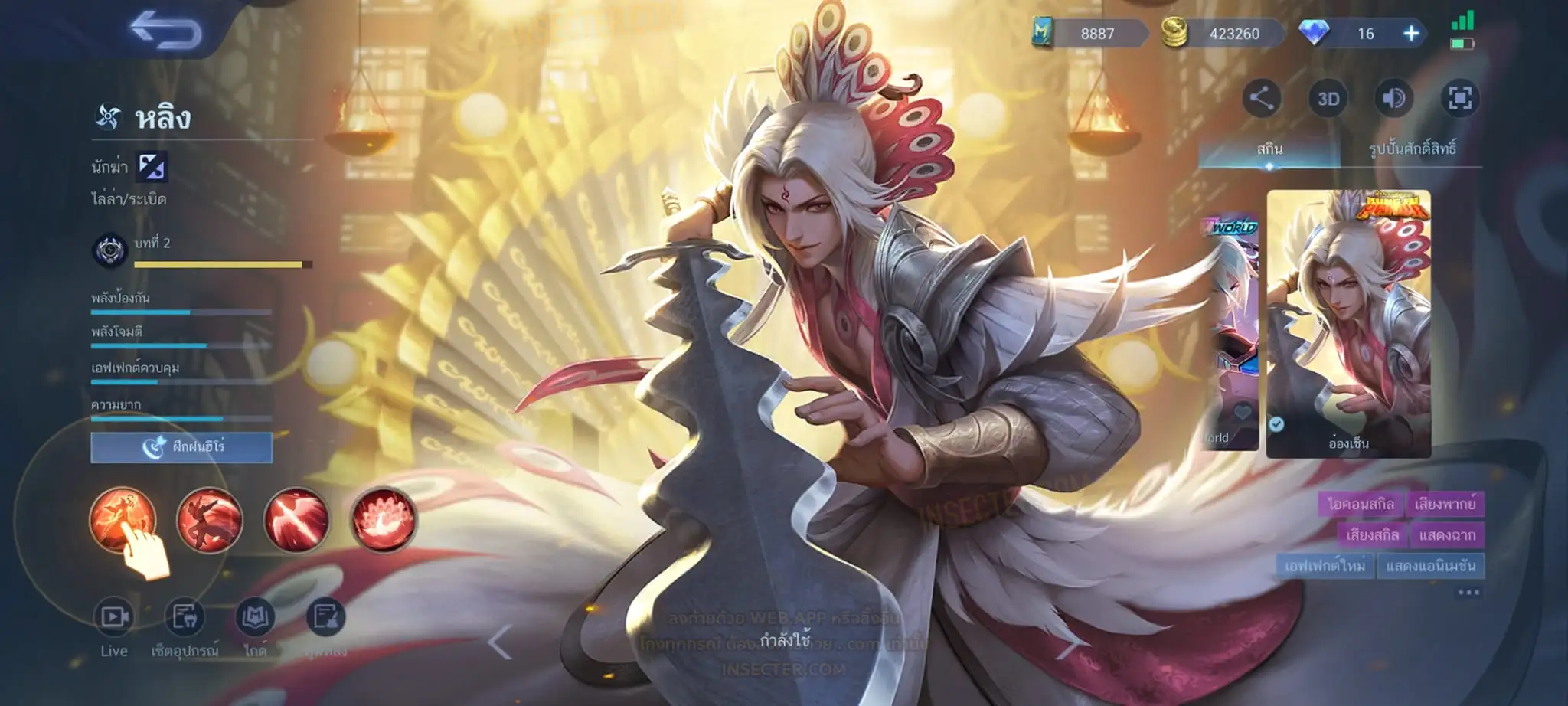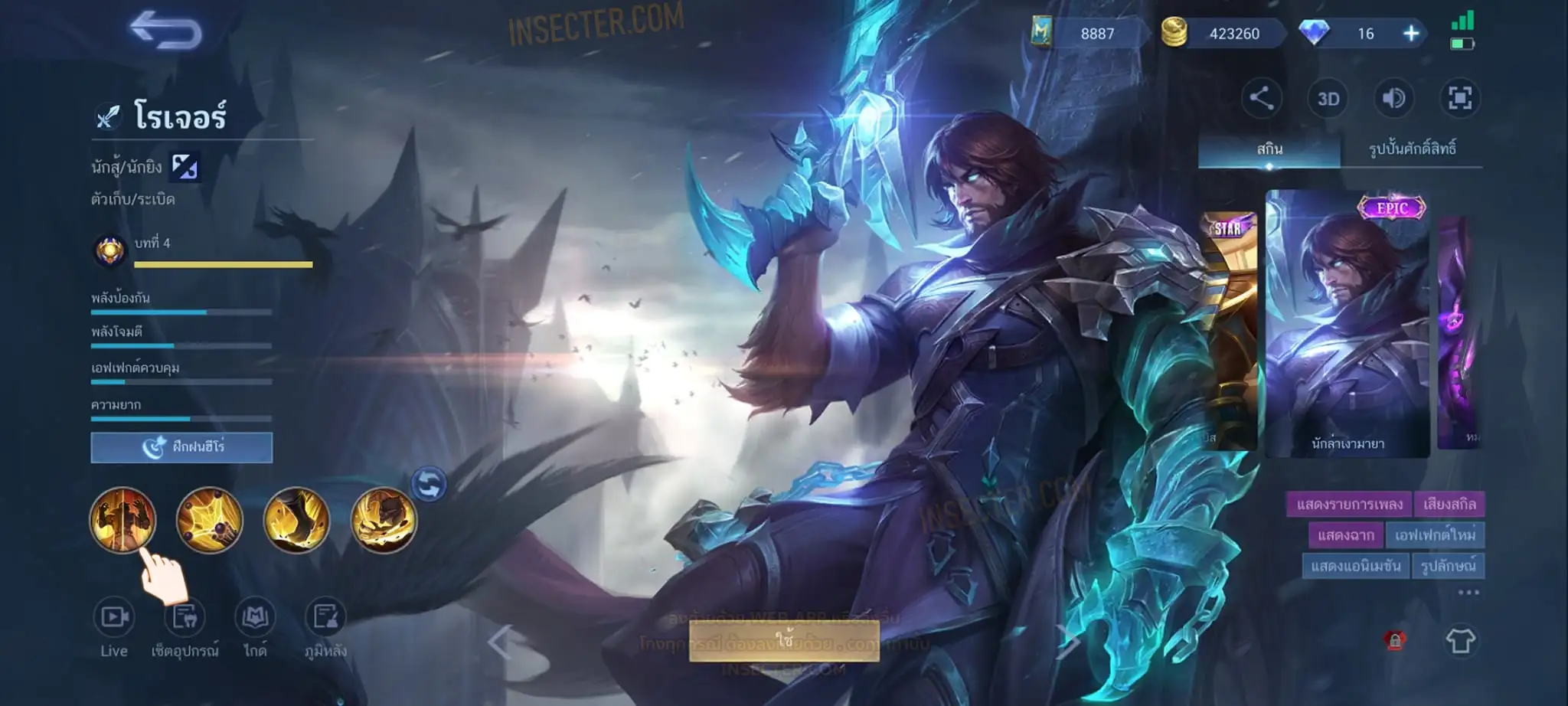 ข้อมูลย่อ : Hero 122 Skin 320 เอ็มเบลตัน/วาร์ปแรร์ร่มไฟ/หยินหยาง/ซุปเปอร์ฮีโร่ ถาวร !!! ผลึกแสงดาว 3,488 (ครบ 5,000 เลือกแลก Skin Ser 1 ตัว) 1.ฟรังโก้ Legend 2.มิยะ Legend 2.ชู Saint Seiya 3.บรูโน่ Dawning 4.รูบี้ อนิเมะ 5.เมลิสซา โนบาระ 6.อะไค กังฟูแพนด้า ครบเซ็ท !!! 7.หลิง อ๋องเช็น ครบเซ็ท !!! 8.ธามัส ไค ครบเซ็ท !!! 9.กูซิออน K 10.ชู อิโอริ 11.กวินนิเวียร์ อาธีน่า 12.คารีน่า ลีโอน่า 13.ชู S.T.U.N 14.ฟลอริน คิตตี้ 15.ฉางเอ๋อ Luner Fast 16.ฮาริธ Champion 17.เลสลีย์ Ster 18.คาร์รี Ster 19.บรูโน่ Neymar Jr 20.มา์ทิส Zodiac ถ่ายมาบางส่วนยังไม่รวม Skin Epic แรร์/Epic/Special/Elite/Season/Ster คอลเลคชั่นอื่นๆ #เติม Season Pass แล้ว