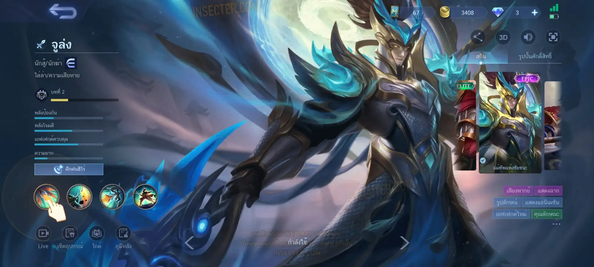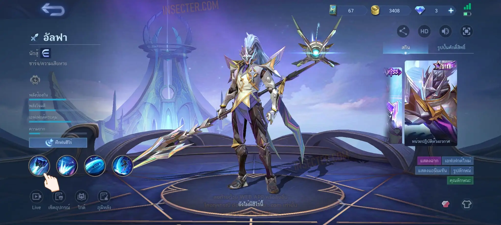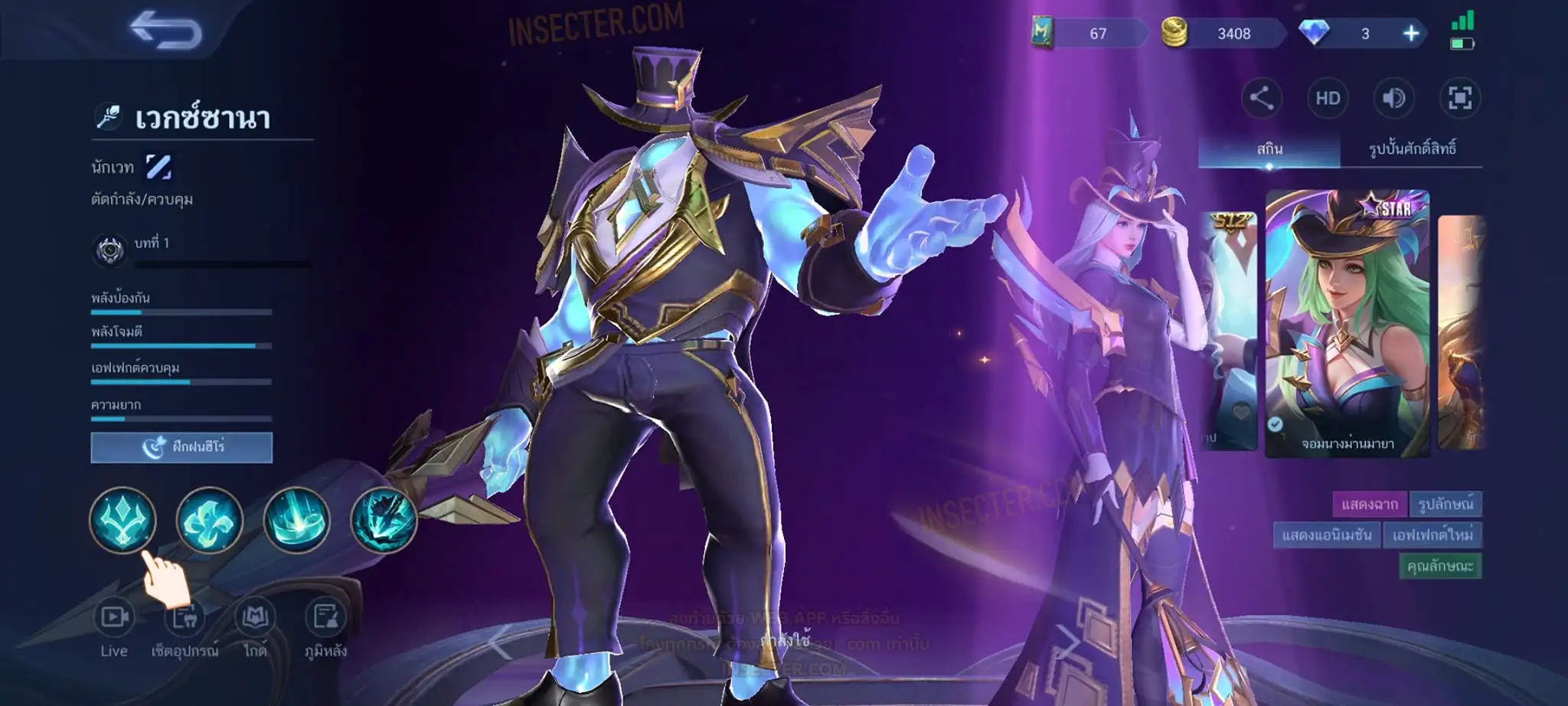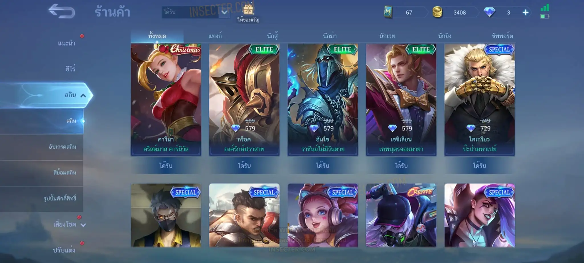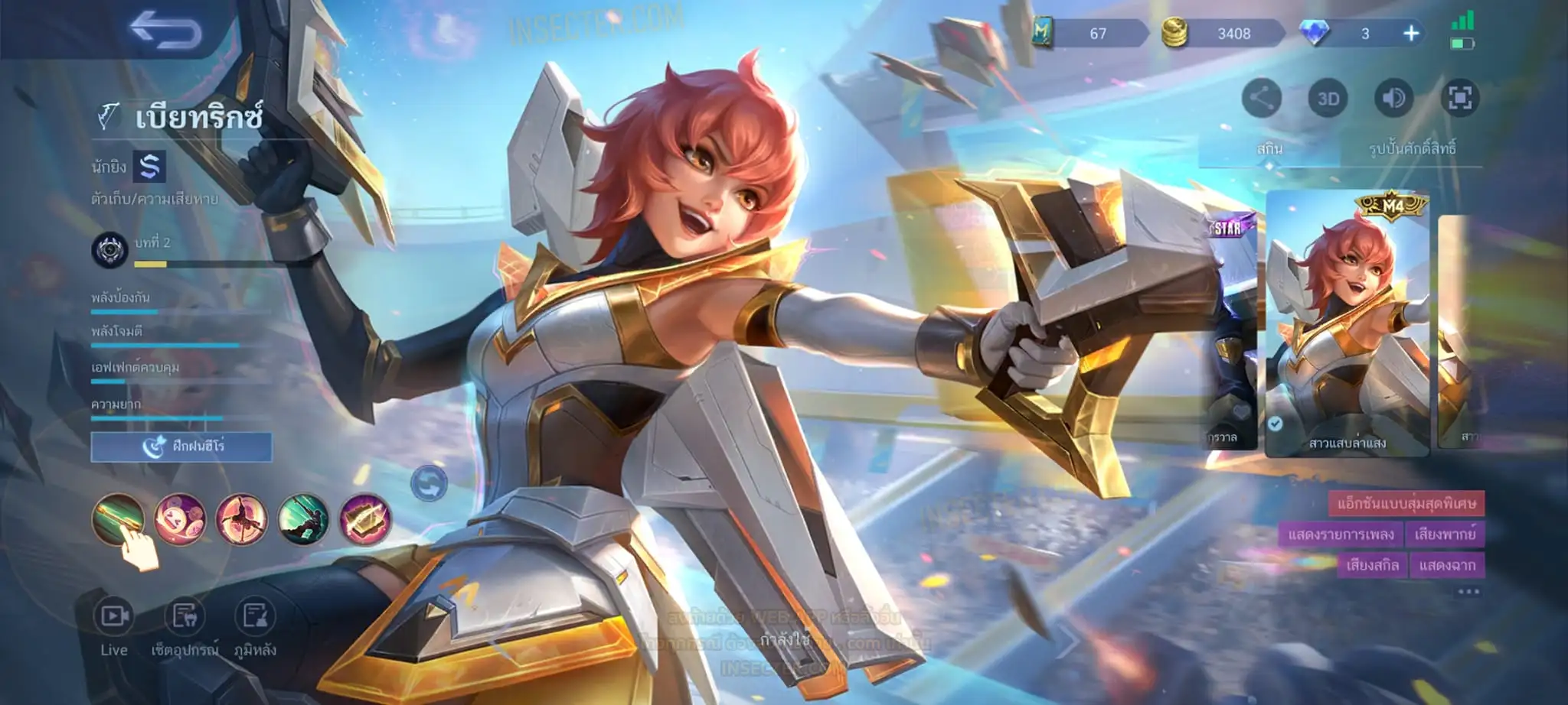 ข้อมูลย่อ : Hero 39 Skin 108 เอ็มเบลสายเวทย์ตัน/วาร์ปปีกพิพากษา แสงดาว ปี 2022 แก่นพลังเวท 80 (ครบ 200 แลก Skin Legend 1 ตัว) 1.เบเนเด็ตตา Collector 2.รูบี้ อนิเมะ 3.แองเจลา อนิเมะ ถ่ายมาบางส่วนยังไม่รวม Skin Special/Elite/Season/Ster คอลเลคชั่นอื่นๆ