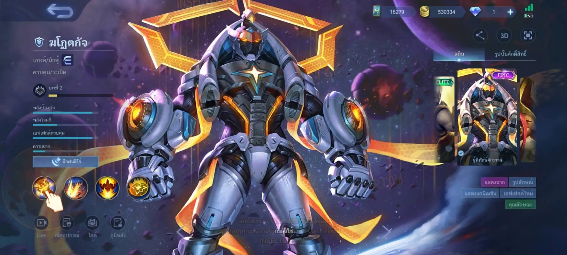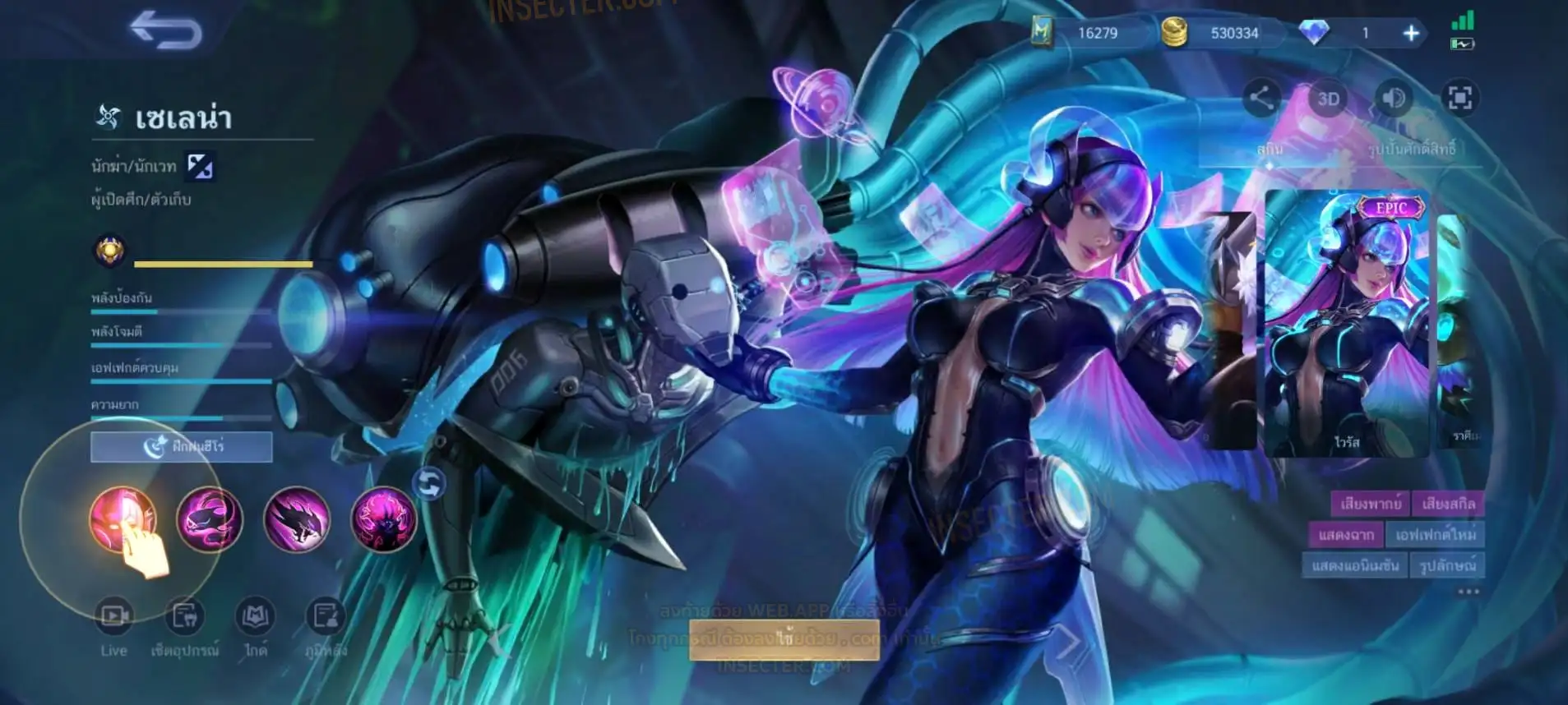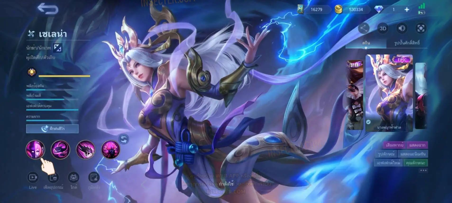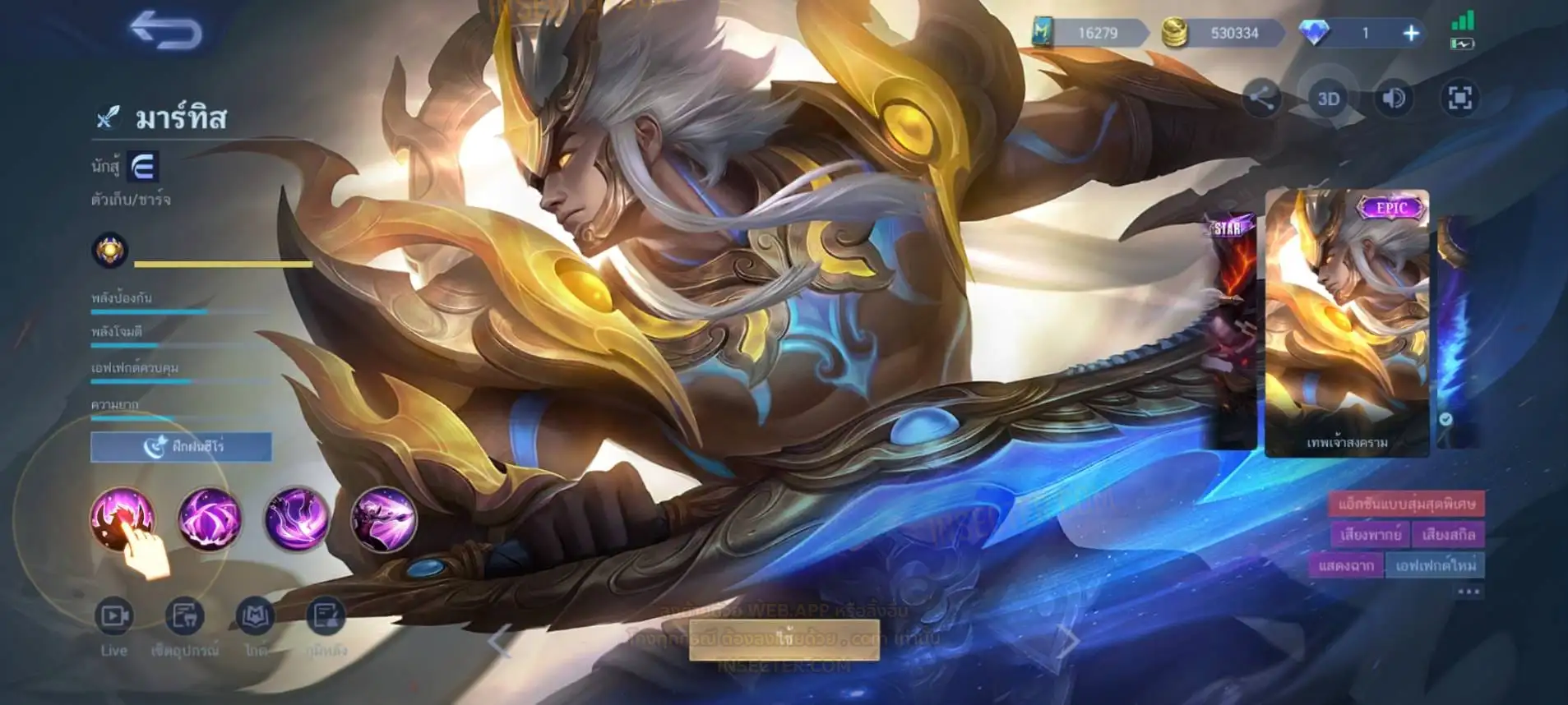 ข้อมูลย่อ : Hero 122 Skin 406 เอ็มเบลตัน/กรอบรูป Zodiac !!! วาร์ปแรร์ผนึกเวทย์สายฟ้า Epic ถาวร !!! วาร์ปแรร์ดอกผนึกนิรันดร์ Epic ถาวร !!! ตั๋ว 16,000 ทอง 530,000 แต้มราศี 61 (ครบ 100 แลก Skin Zodiac 1 ตัว) แก่นพลังเวท 114 (ครบ 200 แลก Skin Legend 1 ตัว) Legend 2 ตัว Collector 1 ตัว อนิเมะ 26 ตัว Zodiac 11/13 ตัว !!! M2/M3/M4/Prime 4 ตัว Epic แรร์/ธรรมดา 21 ตัว ถ่ายมาบางส่วนยังไม่รวม Special/Ster/MSC/Christmas/Valentine/Halloween/AS/515/Create/Season คอลเลคชั่นอื่นๆ