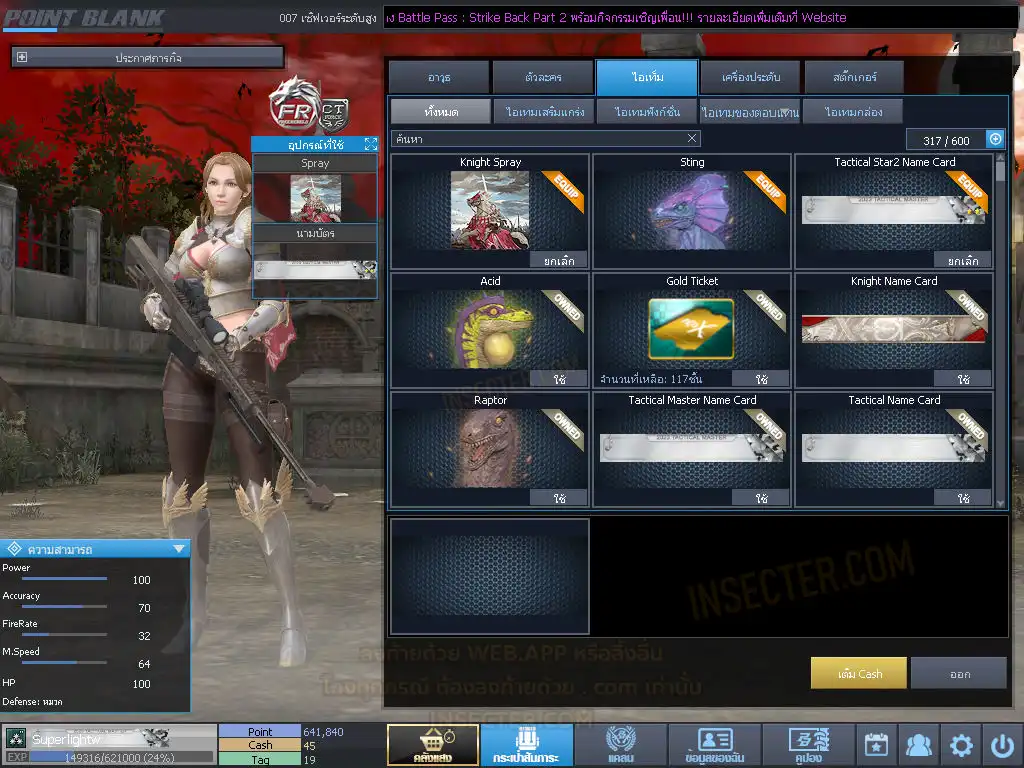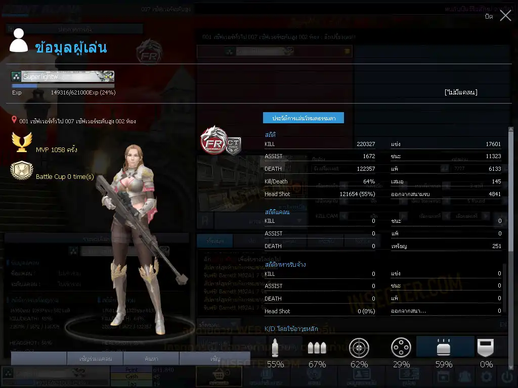 ข้อมูลย่อ : 3ดอกมหาเทพโค้ดแรร์รวม2กระบอก/มีดถาวร1เล่ม/ตัวละครถาวร2ฝั่ง/เนมการ์ดถาวรเพียบ : หลักครบ ฉายาครบ : ปืuวันของวันรวมเยอะมาก + ไอเทมฟูลพร้อมลุย : พร้อมลุยทำตัวหลักได้โคตรเฟี้ยว : ไอดีสะอาดสวยๆ