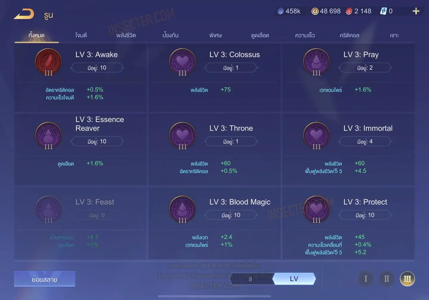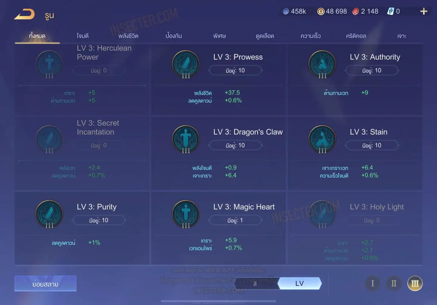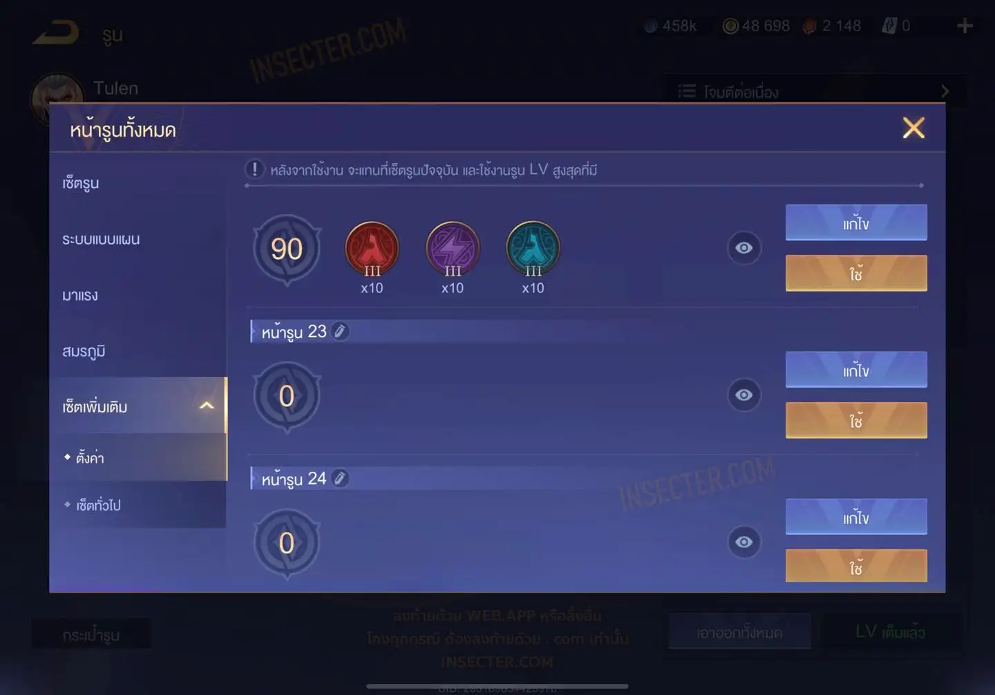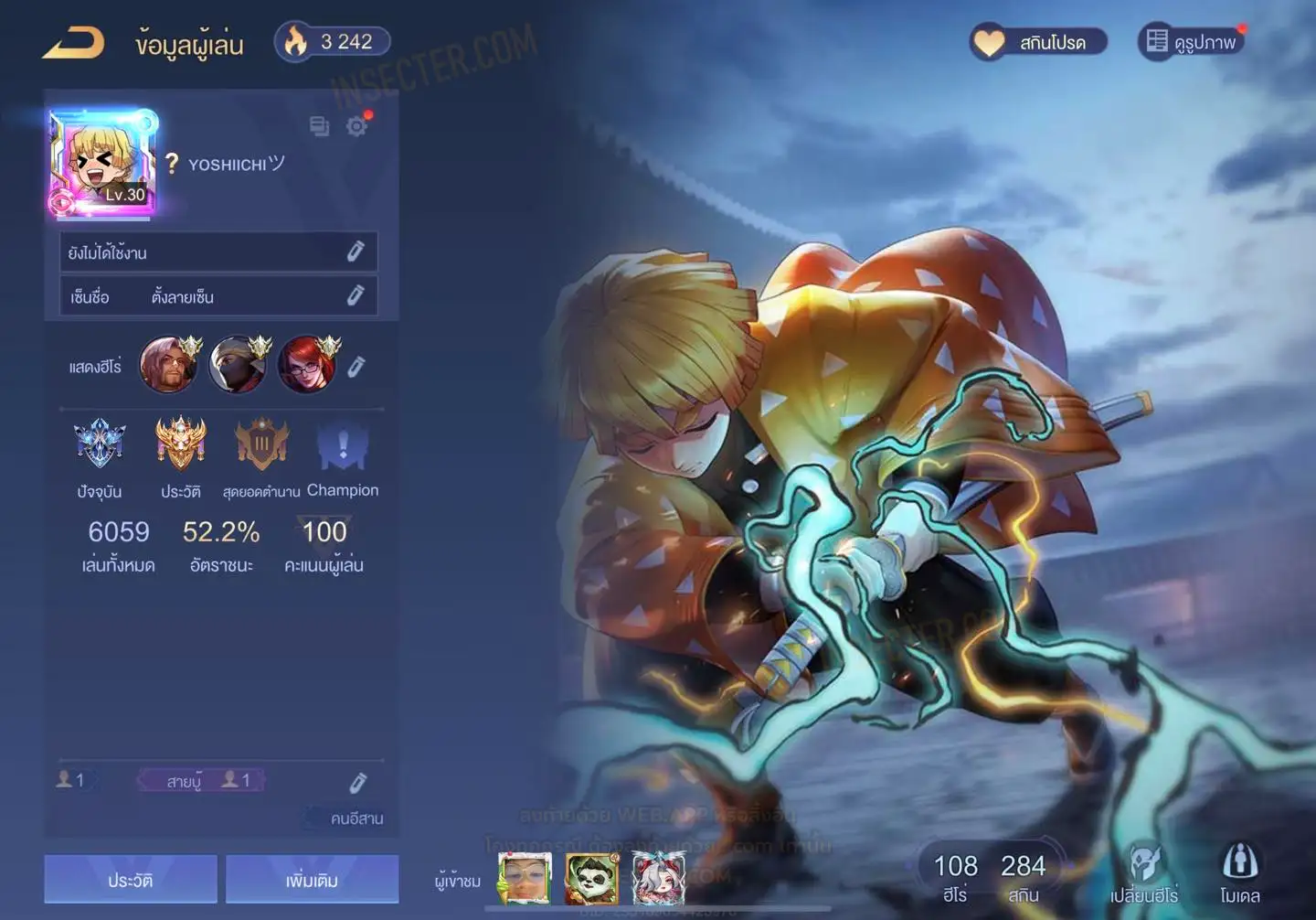 ข้อมูลย่อ : HERO 108 SKIN 284 สกินแรร์ดาบพิฆาตอสูร รูน 24 หน้า