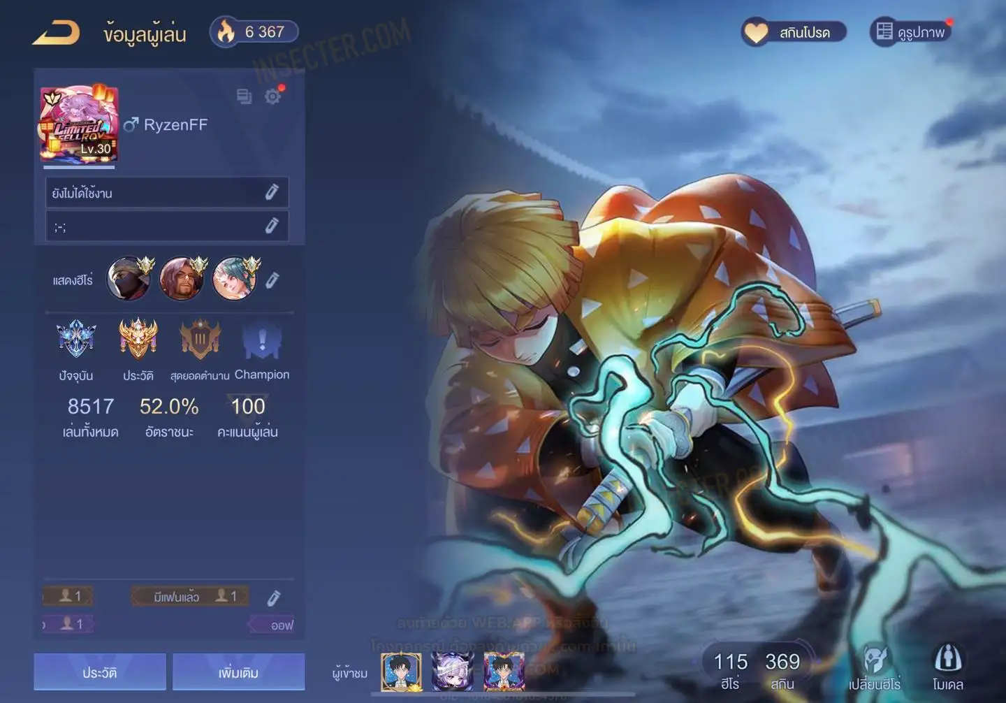 ข้อมูลย่อ : HERO 115 SKIN 369 สกินแรร์ดาบพิฆาตอสูร รูน 19 หน้า